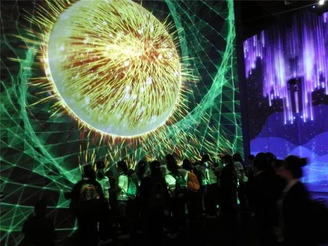 ? ? ? “Hello Universe”体验馆是一个数字新媒体互动空间,学生们置身于运用声光电特效技术和前沿交互科技打造的生动太空场景之中。