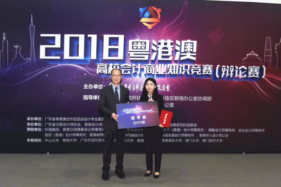 中山大学获二等奖,促进会副会长、会计专委会(香港区)主任叶冠荣为他们颁奖