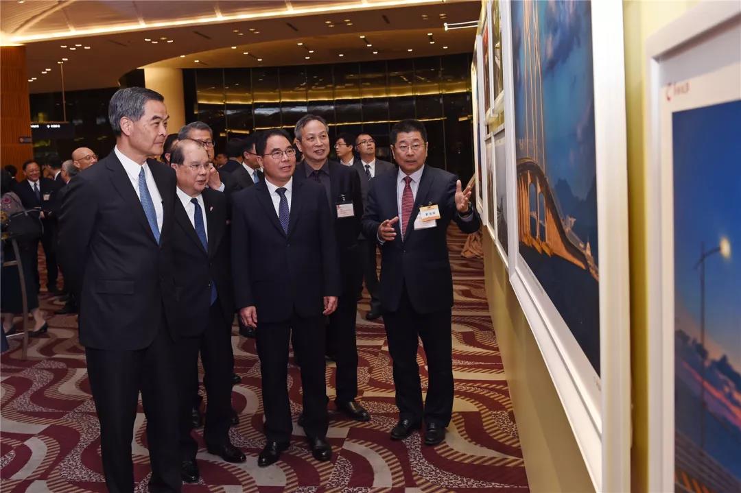 主要嘉宾参观港珠澳大桥摄影展时合影
