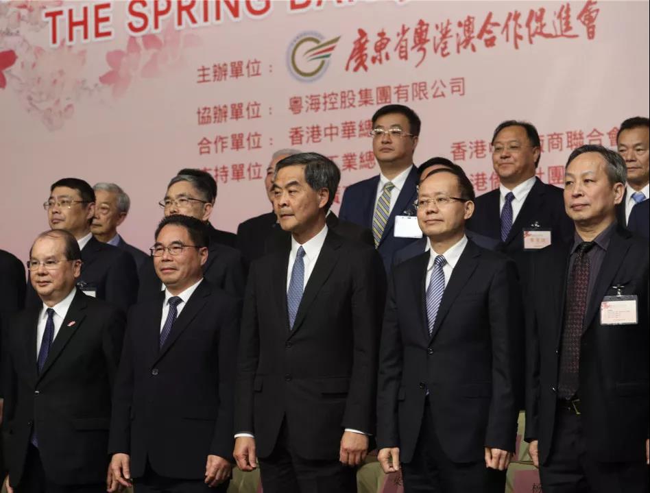 ? ? ? 3月25日晚,香港会展中心华灯溢彩、高朋满座,由广东省粤港澳合作促进会主办的广东省2019年香港迎春宴会在这里举行。全国政协副主席、粤港澳合作促进会荣誉会长梁振英出席宴会,广东省委常委叶贞琴,香港特区政府政务司司长、粤港澳合作促进会荣誉顾问张建宗出席并致辞。出席宴会的主要嘉宾还有:香港特区政府财政司司长陈茂波,中央政府驻香港联络办副主任杨健,外交部驻港特派员公署副特派员赵建凯,广东省政协副主席张嘉极,省政府副秘书长郑伟仪,省港澳办主任廖京山,省发改委副主任、省推进粤港澳大湾区建设领导小组办公室常务副主任曹达华,省政协副秘书长伍守荣,粤海控股集团董事长、粤港澳合作促进会会长黄小峰,粤港澳合作促进会执行会长林迪夫,清华大学港澳研究中心主任王振民等。香港特区政府,中央驻港有关机构、省有关部门和驻港中资机构负责人以及香港各界代表共500余人参加活动。