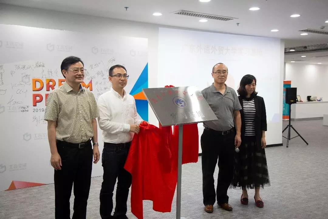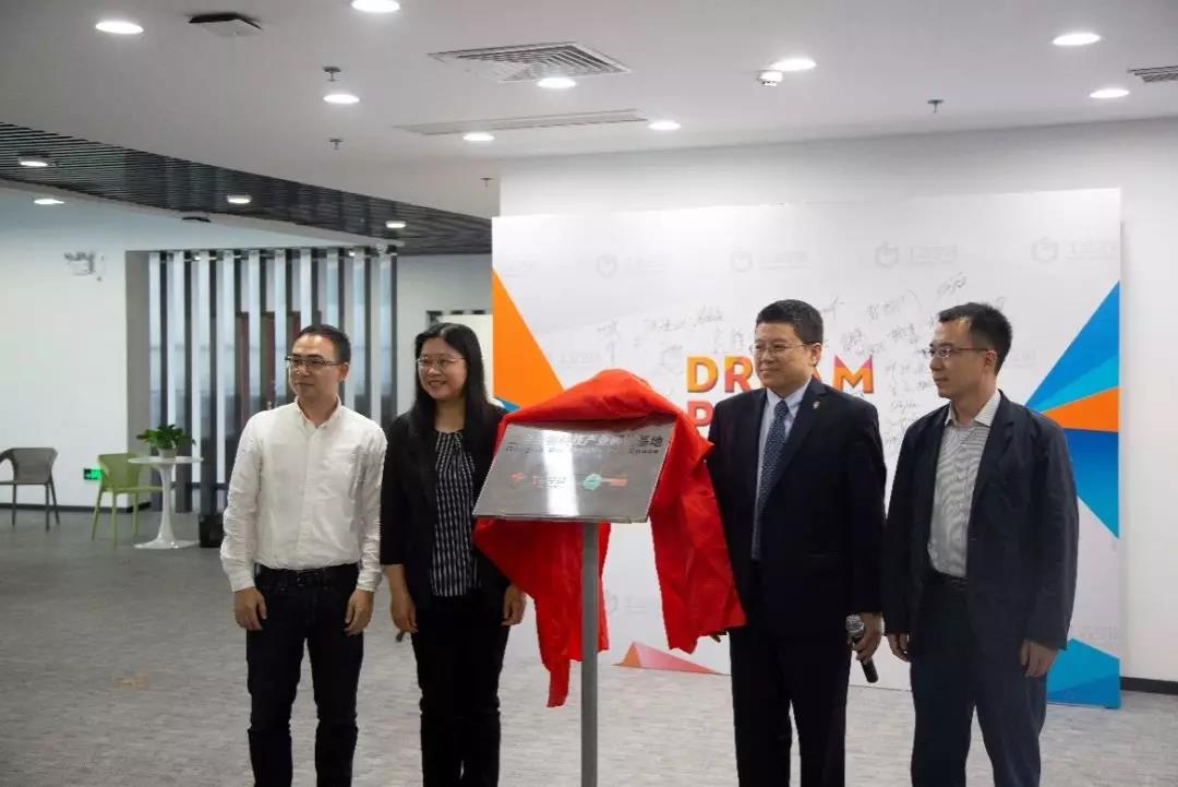 中山市统战部副部长林春红、广外经济贸易学院院长张建武、副院长唐静、工合空间联合创始人叶兴华共同揭牌