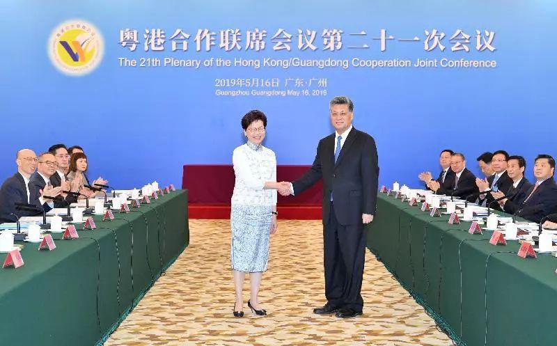 香港特首林郑月娥率领的港方代表团与广东省省长马兴瑞率领的粤方代表团5月16日在广州举行粤港合作联席会议第21次会议,这是《粤港澳大湾区发展规划纲要》公布后举行的首次会议。双方以互利共赢为原则,积极寻求政策创新和突破,在九个项目上取得成果。