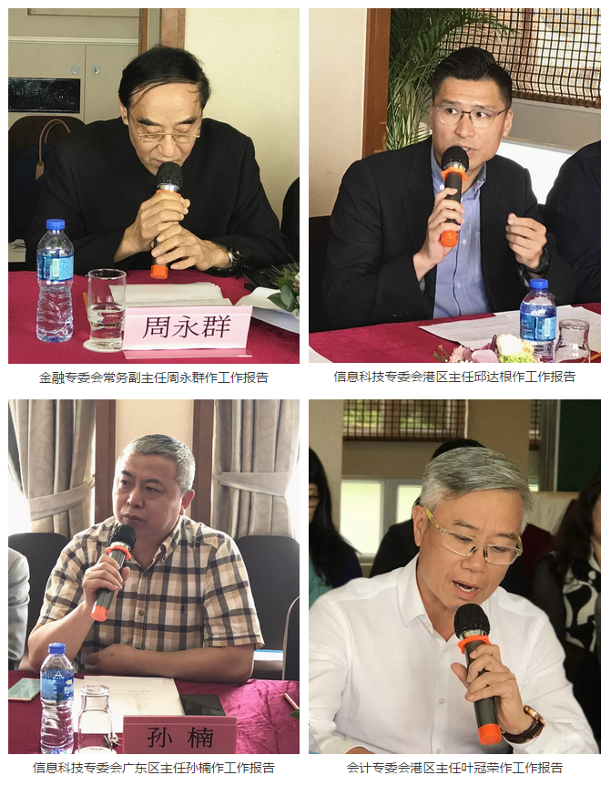 ? ? ? ?金融专委会常务副主任周永群、信息科技专委会港区主任邱达根和广东区主任孙楠、会计专委会港区主任叶冠荣、文化传播委员会秘书长陈士军、医药卫生大健康委员会主任王国红以及时尚品牌委员会常务副主任汤敏仪作了2018年工作总结和2019年工作计划。2018年各专业委员会扎实工作、积极拓展,在促进会的领导下,按照自身发展的特色,发挥专业委员会的作用,积极、自主开展多项活动,为粤港澳三地在专业方面的交流与合作提供了重要平台作用?;嵘?,广东省人大常委、广东省律师协会副会长刘涛就筹备成立法律专委会提出了建议,他表示,在促进会这样一个框架平台下成立法律专委会很有必要,粤港澳三地在法律服务业上合作发展将会成为未来的趋势。香港律师林新强和广东省君厚律师事务所李治国都表示支持法律专委会的成立。