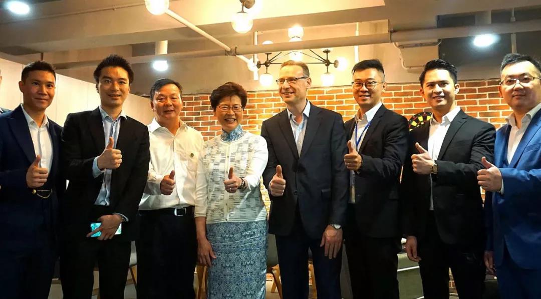 香港特别行政区行政长官林郑月娥率团来佛山考察,与佛山市市长朱伟,工合空间创客团队合影(右三为)霍展邦