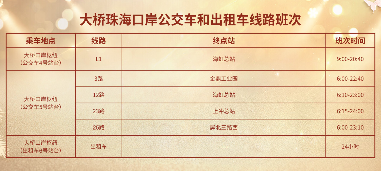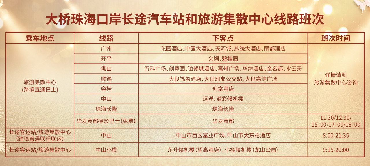 乘车点:大桥珠海口岸旅游集散中心