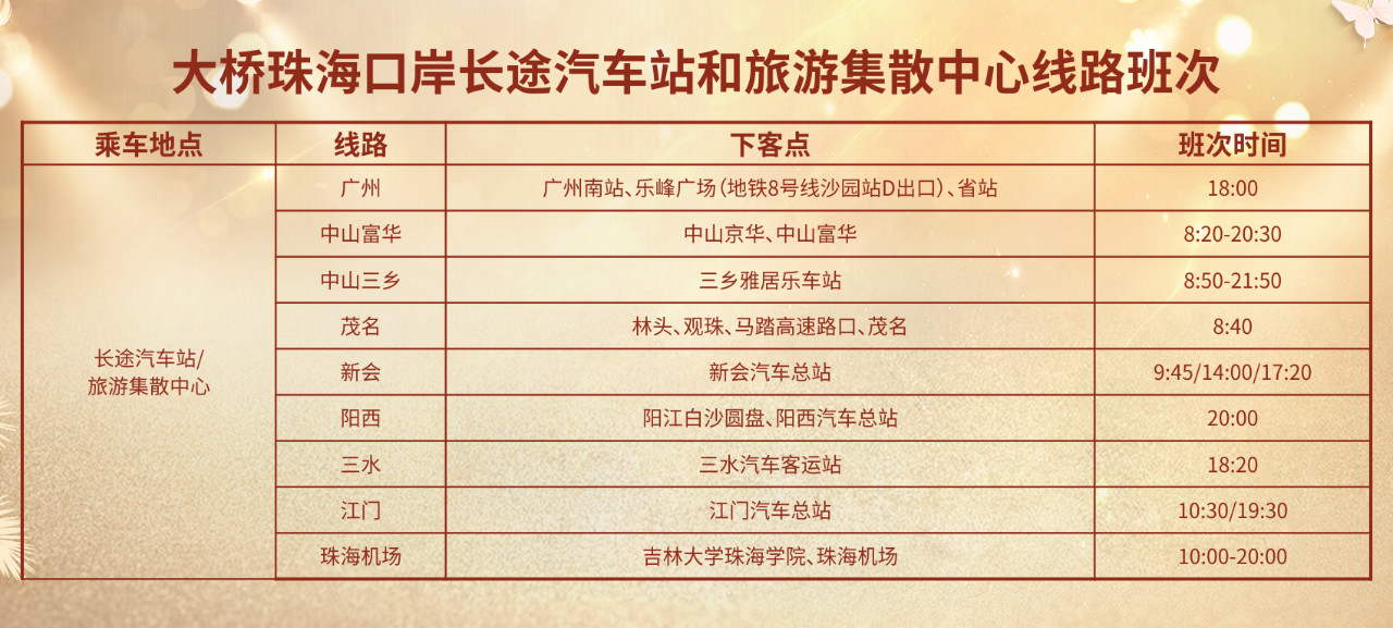 大桥珠海口岸--广州南站、省站、乐峰广场