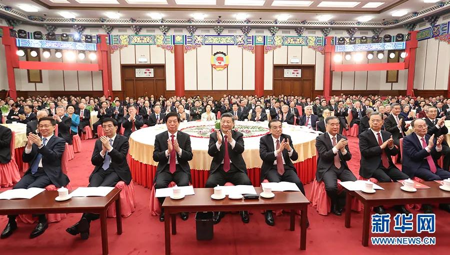 2019年12月31日,全国政协在北京举行新年茶话会。党和国家领导人习近平、李克强、栗战书、汪洋、王沪宁、赵乐际、韩正、王岐山出席茶话会并观看演出。新华社记者 黄敬文 摄