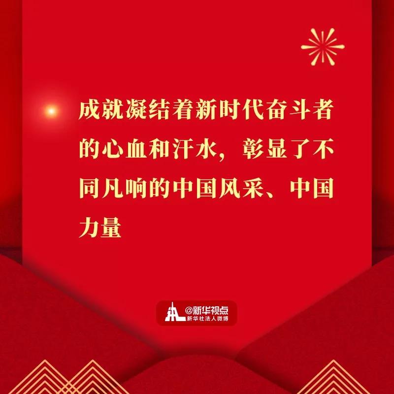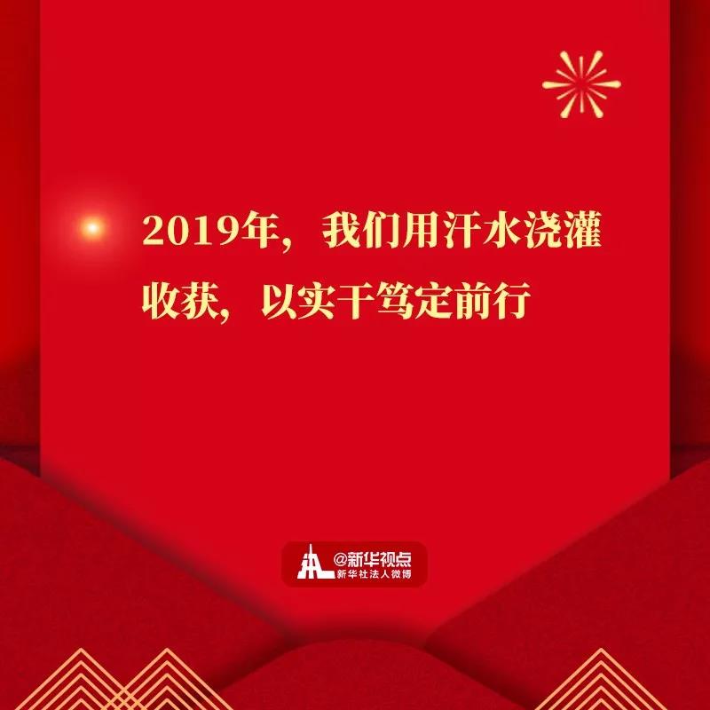 ? ? ? ??2019年,我们用汗水浇灌收获,以实干笃定前行。高质量发展平稳推进,我国国内生产总值预计将接近100万亿元人民币、人均将迈上1万美元的台阶。三大攻坚战取得关键进展。京津冀协同发展、长江经济带发展、粤港澳大湾区建设、长三角一体化发展按下快进键,黄河流域生态?;ず透咧柿糠⒄钩晌艺铰浴H?40个左右贫困县摘帽、1000多万人实现脱贫。嫦娥四号在人类历史上第一次登陆月球背面,长征五号遥三运载火箭成功发射,雪龙2号首航南极,北斗导航全球组网进入冲刺期,5G商用加速推出,北京大兴国际机场“凤凰展翅”……这些成就凝结着新时代奋斗者的心血和汗水,彰显了不同凡响的中国风采、中国力量。