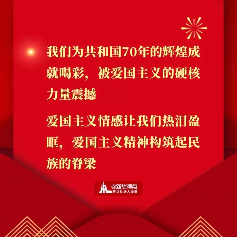 ? ? ? ??2019年,最难忘的是隆重庆祝新中国成立70周年。我们为共和国70年的辉煌成就喝彩,被爱国主义的硬核力量震撼。阅兵方阵威武雄壮,群众游行激情飞扬,天安门广场成了欢乐的海洋。大江南北披上红色盛装,人们脸上洋溢着自豪的笑容,《我和我的祖国》在大街小巷传唱。爱国主义情感让我们热泪盈眶,爱国主义精神构筑起民族的脊梁。这一切,汇聚成礼赞新中国、奋斗新时代的前进洪流,给我们增添了无穷力量。