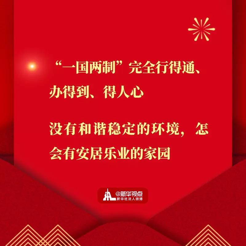 ? ? ? ??前几天,我出席了澳门回归祖国20周年庆?;疃椅拿欧比傥榷ǜ械叫牢?。澳门的成功实践表明,“一国两制”完全行得通、办得到、得人心。近几个月来,香港局势牵动着大家的心。没有和谐稳定的环境,怎会有安居乐业的家园!真诚希望香港好、香港同胞好。香港繁荣稳定是香港同胞的心愿,也是祖国人民的期盼。