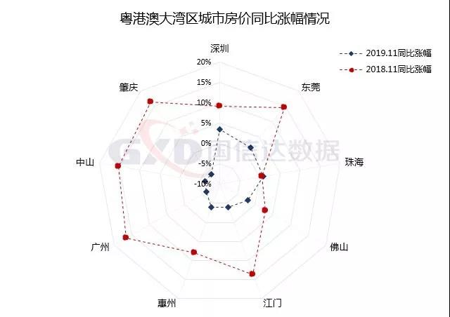 值得一提的是,2019年深圳楼市确实有点秀。就拿11月的房价数据来说,2019年深圳楼市升温,以3.39%的同比涨幅领涨粤港澳大湾区。