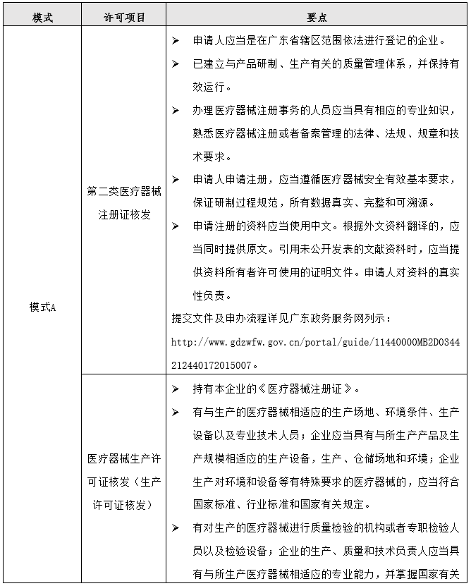 以广东?。ㄊ缘闱蛑唬┪贏/B模式下申办医疗器械注册证和/或医疗器械生产许可证的要点如下: