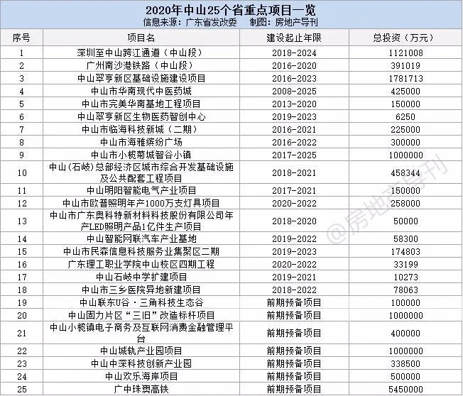 ??3、纵观下表,最近两年,在中山落地的重大项目非常少。据我们不完全统计,2018-2019年,中山仅开工8个项目;而2020年,新开工项目仅2个,分别是中山市欧普照明年产1000万支灯具项目、广东理工职业学院中山校区四期工程。