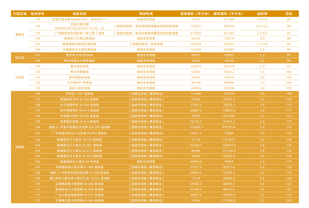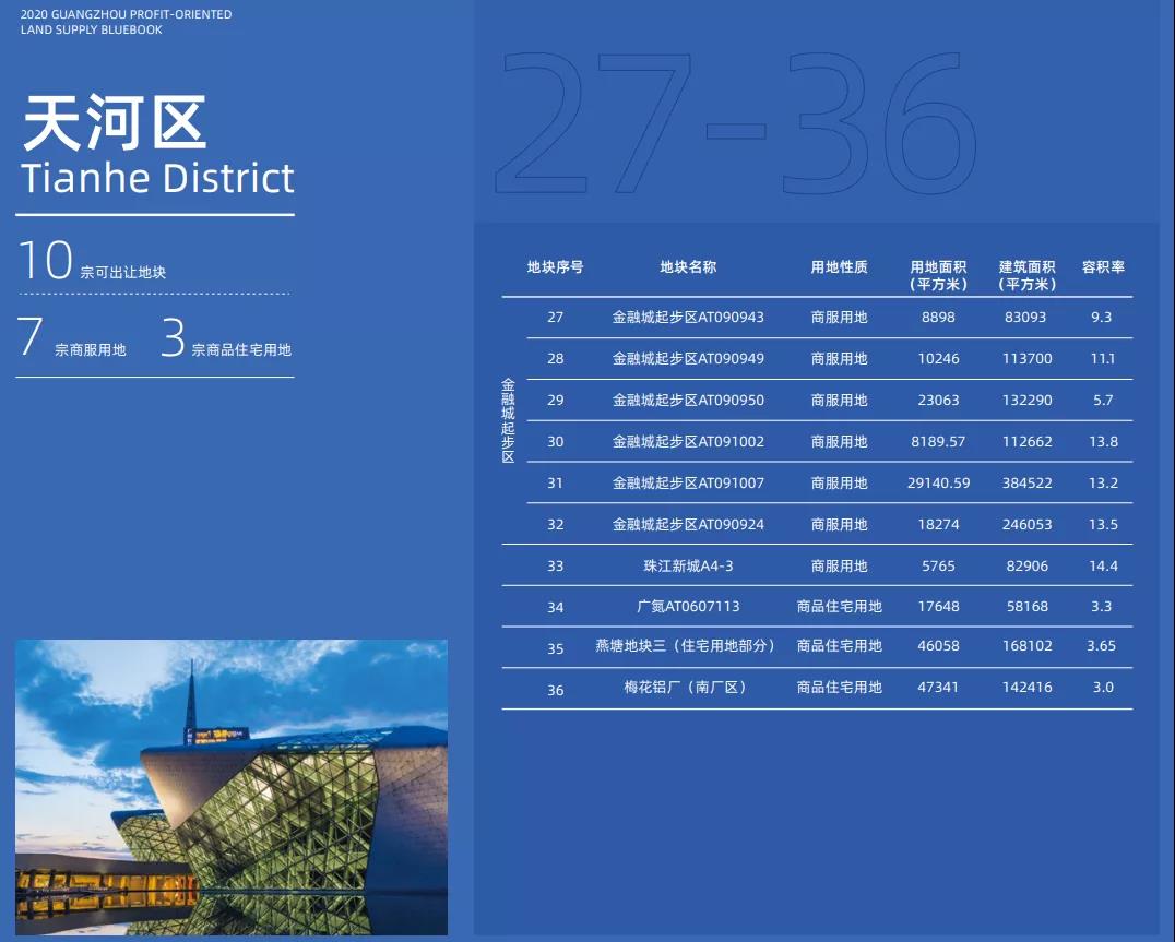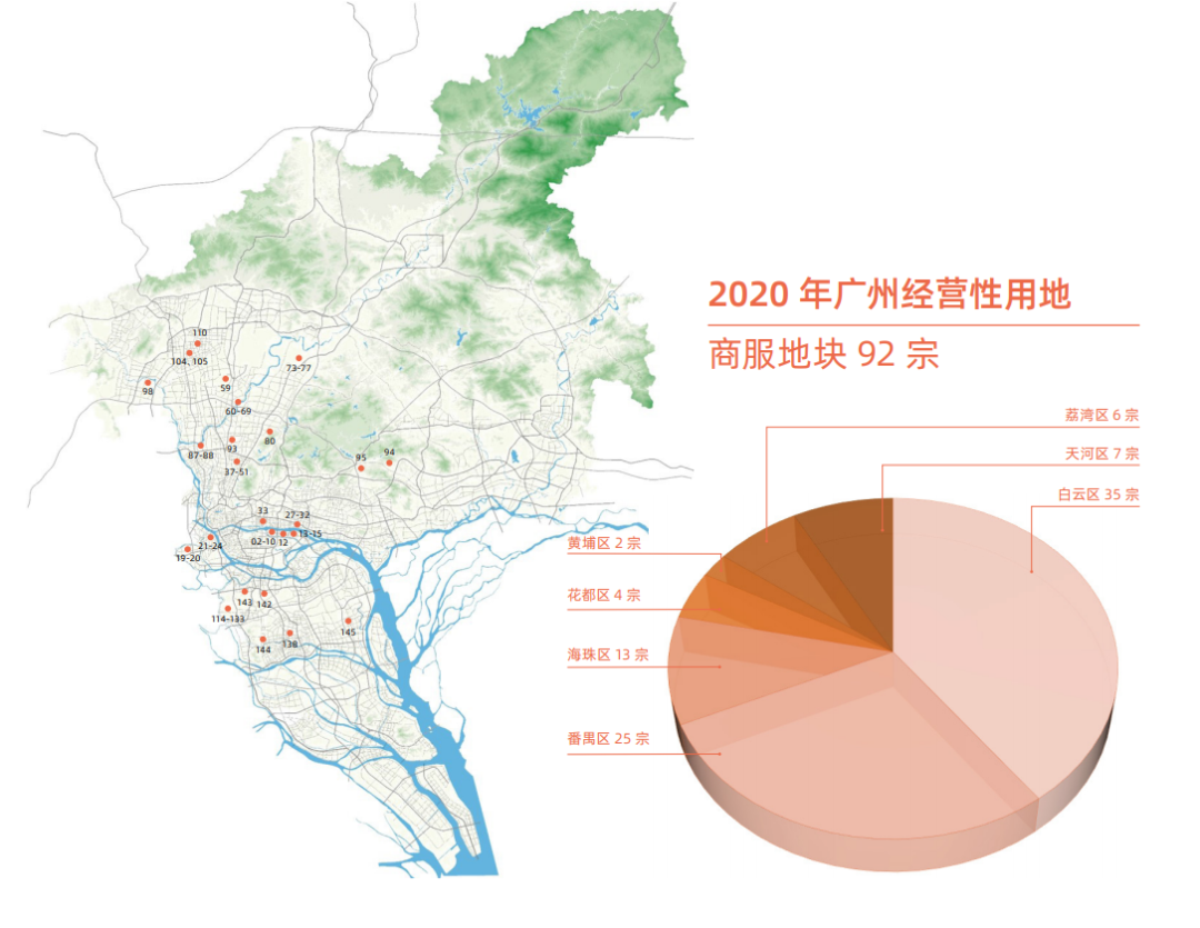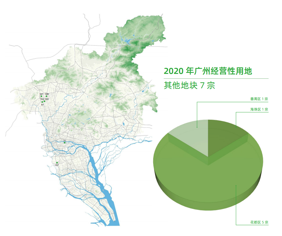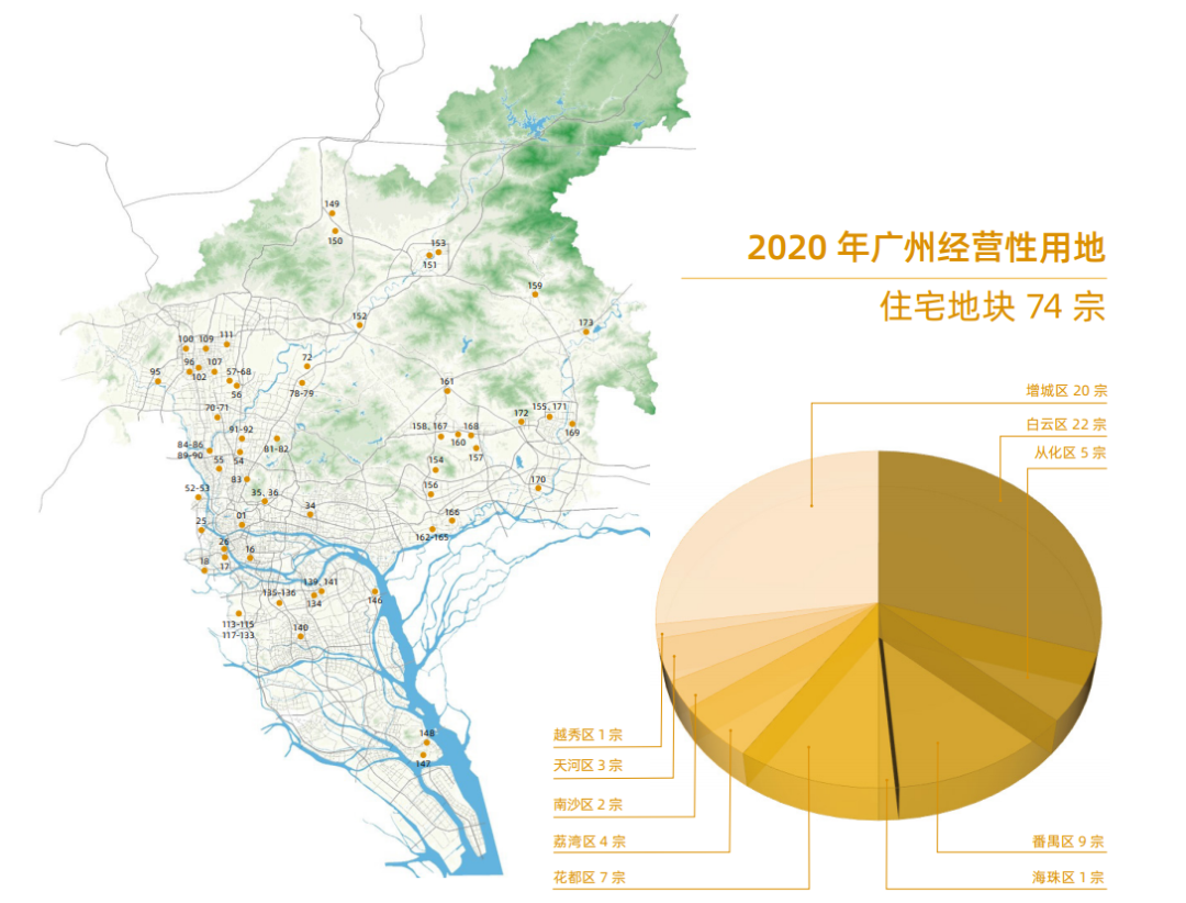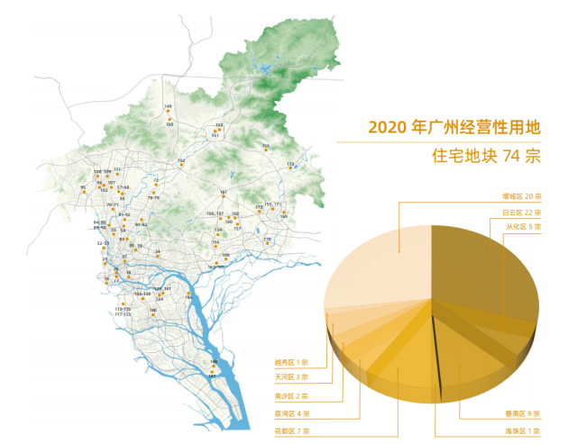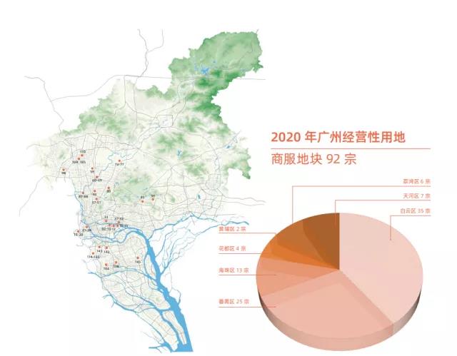 ? ? ? ?今年广州有哪些地块可供出让?土地供应的重点区域在哪里呢?4月9日,广州市规划和自然资源局发布了《2020年广州经营性用地供地蓝皮书》,对收录蓝皮书中的173宗土地进行了详细介绍,其中住宅用地74宗(449.2公顷),商服地块92宗(153公顷),其他地块7宗(44.2公顷)。金融城起步区、琶洲互联网创新集聚区、白云新城商务区、番禺南站片区等区域是商服用地的主要分布区,而住宅用地则主要分布在白云、增城、番禺、花都等区域。