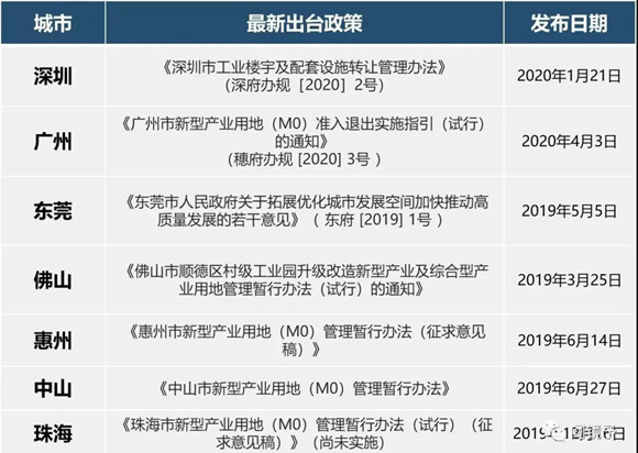 2019年和2020年,粤港澳大湾区各地政府陆续发布支持政策,在用地相对紧张、产业诉求较为强烈的珠江三角洲地区,M0将成为政府招商的主战场。