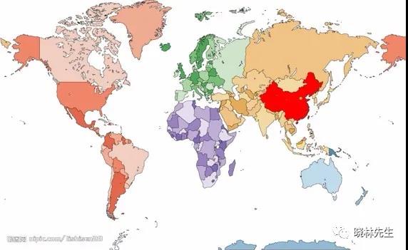 ? ? ? ?西班牙《世界报》认为,几年前非洲人民习惯的世界地图是欧洲在中间(见上图),以美国为代表的美洲在左边,以中国为代表的亚洲在右边。现在这一切正在发生变化,新的世界地图应该是中国在中间,美洲在右边,非洲在左边,欧洲在角落里(见下图)。
