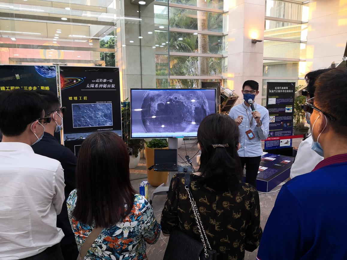 交流团参观了月球与行星科学国家重点实验室,据介绍,实验室现阶段研究领域涉及月球物理学、行星物理学、月球地质学和行星化学等学科,研究方向包括月球和行星内部结构、月球和行星表面物理、行星地形地貌、行星磁场与重力场物理和行星形成与演化等。实验室还为大家准备了3D眼镜,近距离真实的观看了月球表面地形地貌。