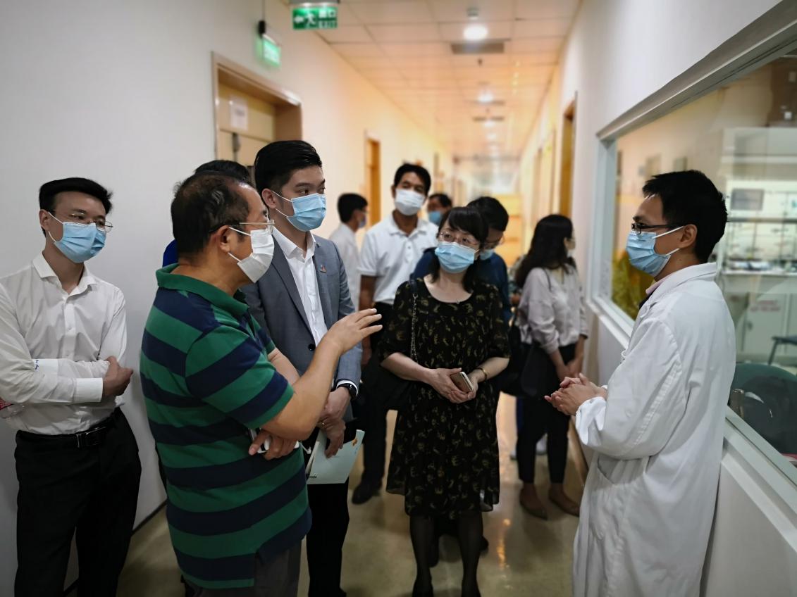 交流团首先来到由我会名誉会长廖泽云先生创办的澳门科技大学,参观了诺贝尔奖得主埃而文·内而博士生物物理与中医药研究室。