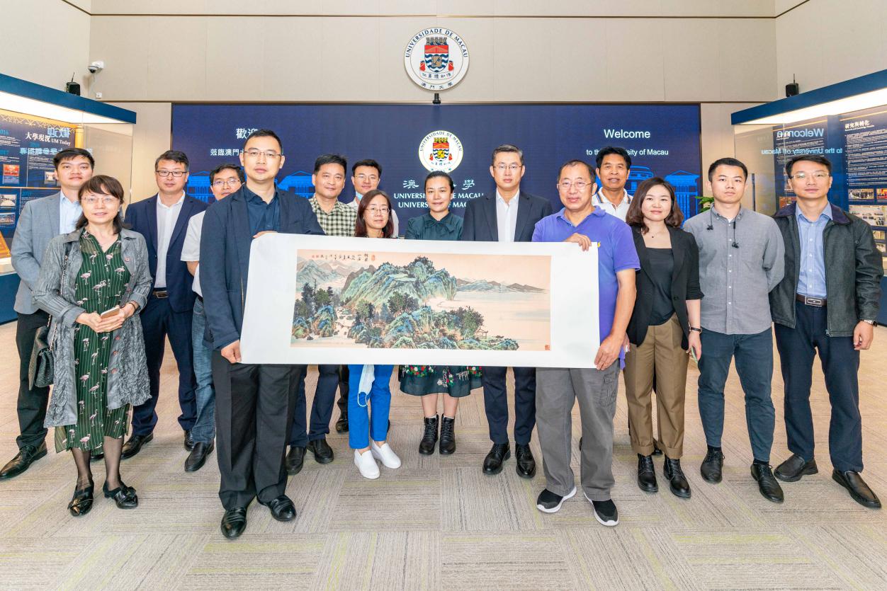 张克科分别向澳门大学和澳门科技大学送上了深圳市知名画家王建老师的山水画作品,代表了大湾区的绿水青山,愿大湾区的人民可以携手共创发展,共建好美家园!