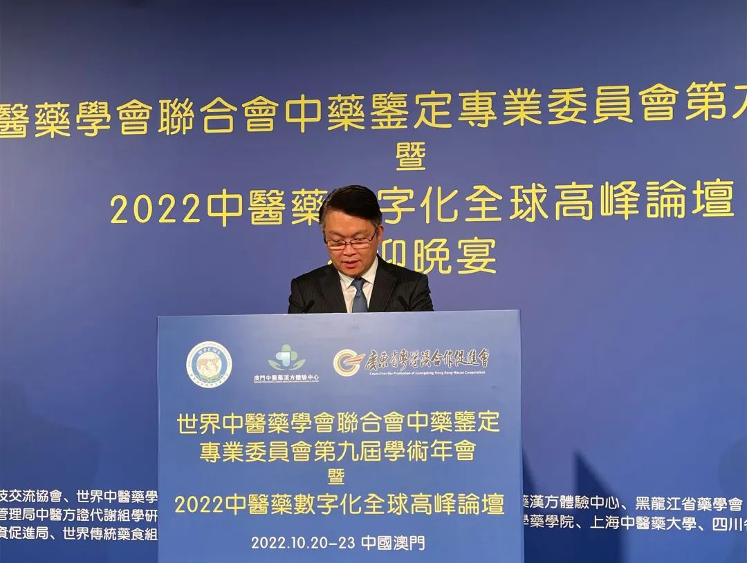 2022年10月21日,“世界中医药学会联合会中药鉴定专业委员会第九届学术年会”暨“2022 中医药数字化全球高峰论坛”在澳门正式开幕。