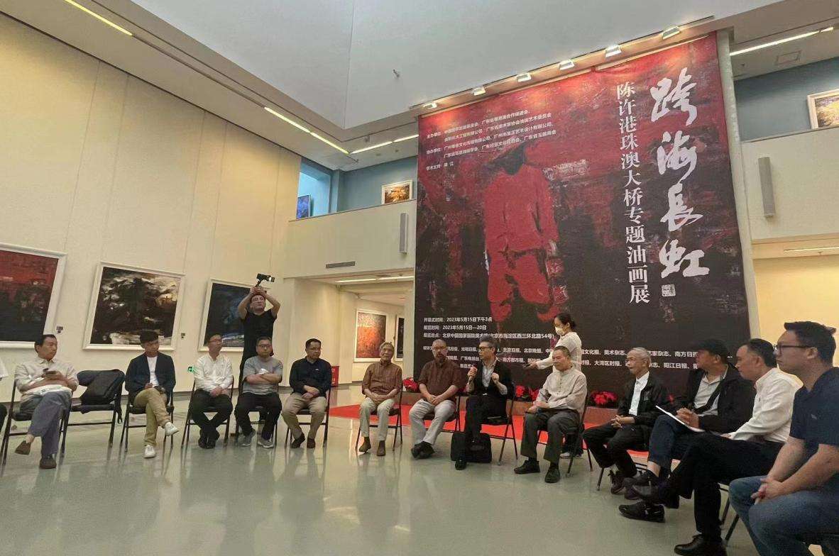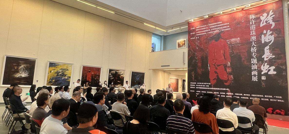 5月15日,“跨海长虹——陈许港珠澳大桥专题油画展”在中国国家画院美术馆开幕。展览以恢宏的气势展现了广东改革开放以来及粤港澳大湾区建设取得的辉煌成就。