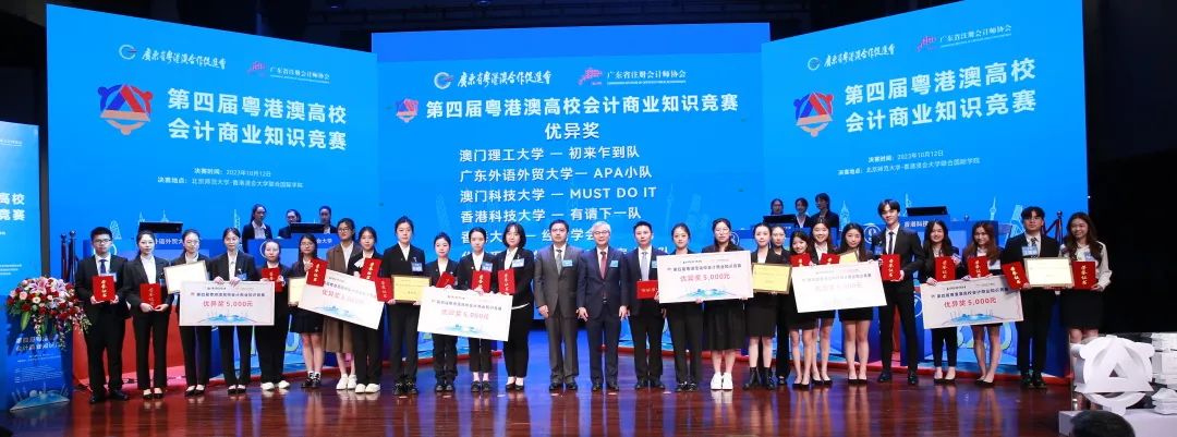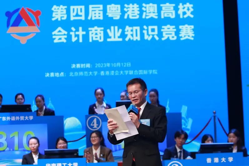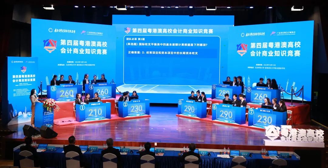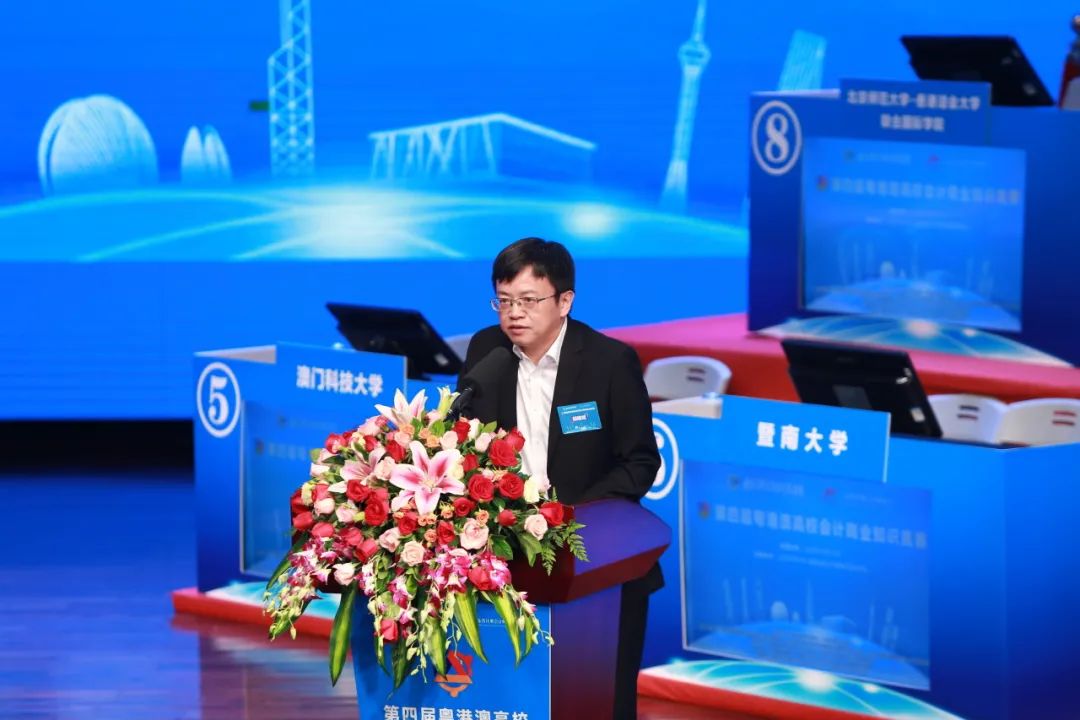 10月12日,由广东省粤港澳合作促进会和广东省注册会计师协会主办的“第四届粤港澳高?;峒粕桃抵毒喝本鋈谥楹J斜本┦Ψ洞笱?香港浸会大学联合国际学院成功举办。香港中联办行政财务部副部长郑勇男、广东省人民政府港澳事务办公室副主任龙广艳、广东省财政厅副厅长胡建斌、广东省审计厅二级巡视员罗洁玲、广东省粤港澳合作促进会执行会长林迪夫、澳门特区政府财政局局长容光亮、香港特区政府驻粤经济贸易办事处副主任白梅霞,以及中国审计署、澳门中联办、珠海市财政局、大湾区有关地市港澳局等单位代表,粤港澳三地会计界有关协会、专业人士、专家学者、师生代表等200多人出席决赛现场。