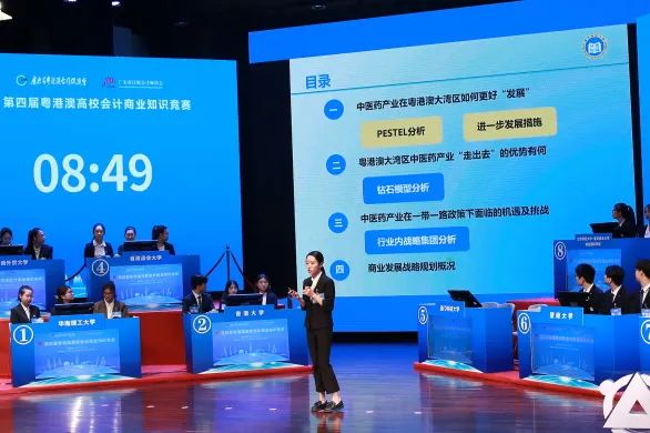 粤港澳三地高?;橹稳?,14所高校踊跃报名,经过初赛,最终9所高校参赛队进入决赛。决赛设团队风采、案例分析、团队必答、团队抢答、风险题五个环节,从专业知识、大湾区资讯、团队合作、创新思维、论述表达、风险决策等多方面考验各参赛选手的综合能力。在案例分析环节,三地大学生从数字科技、高端制造业、生物或中医药三大领域,分析企业在经营决策中应如何把握粤港澳大湾区深度融合发展的重要机遇,他们认真学习,积极思考,站在实践角度去了解大湾区的营商环境、政策红利等优势,对企业发展提出了战略性的商业发展计划,案例分析中各队尽显当代粤港澳大学生知识丰富、勇于突破、敢于创新的精神风貌;在团队必答、抢答、风险题环节,各参赛队利用他们扎实的专业知识基础,争分夺秒、你追我赶,呈现了一场紧张、刺激的比赛。