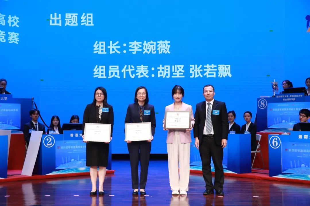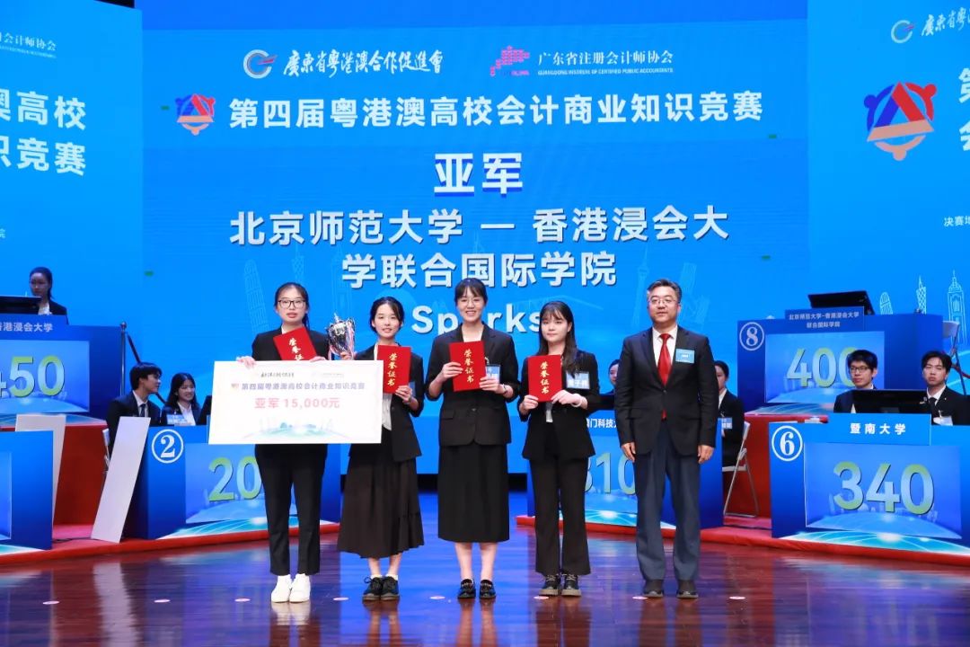 香港中联办行政财务部副部长郑勇男为北京师范大学-香港浸会大学联合国际学院参赛队颁发亚军奖杯