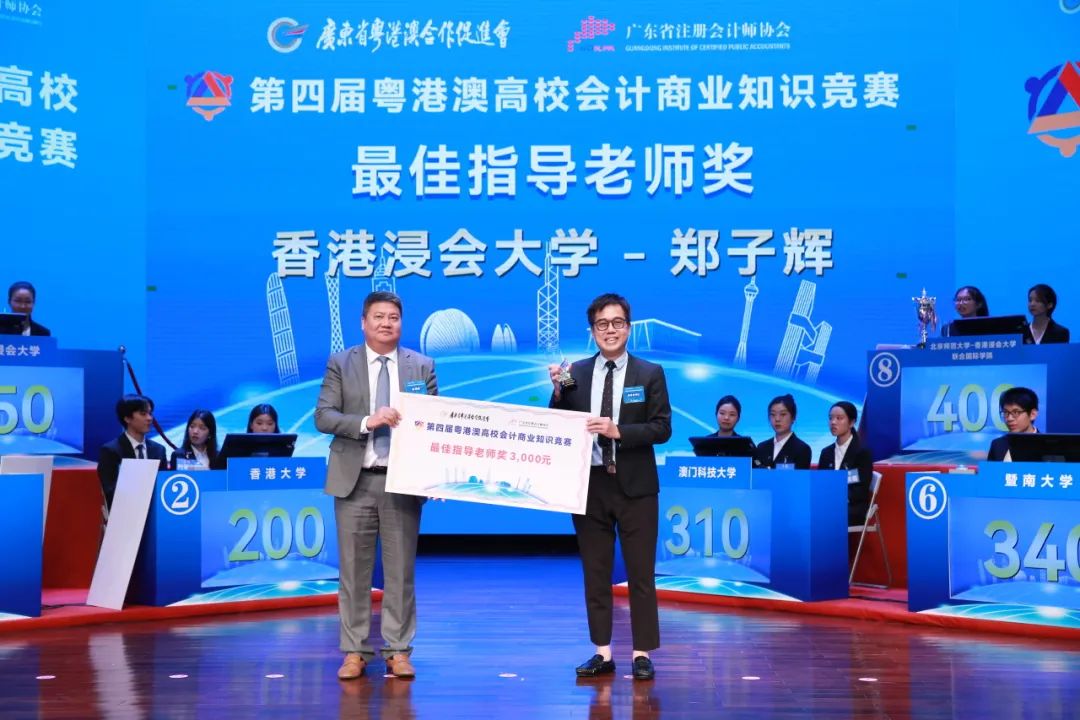 广州注册会计师协会会长陈海防为香港浸会大学郑子辉老师颁发最佳指导老师奖