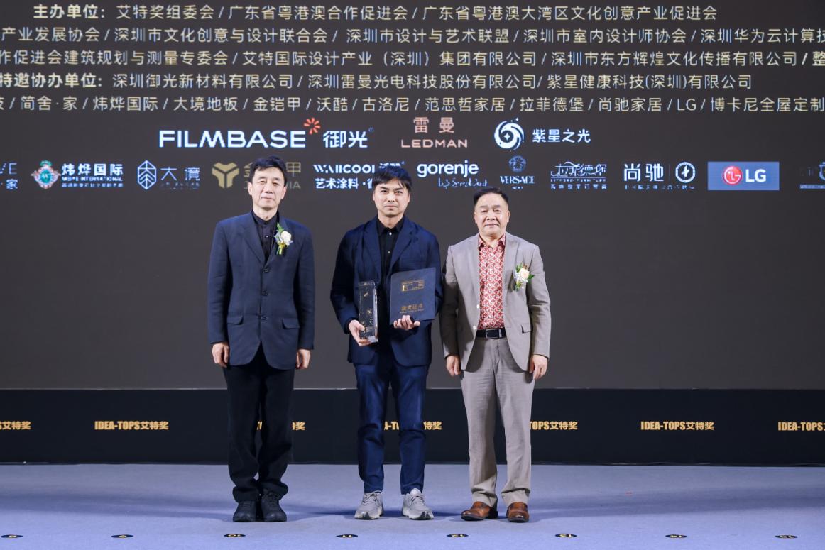 广东省粤港澳大湾区文化创意产业促进会会长王桂科和中国工程院院士王建国共同为第13届艾特奖“全球最佳室内设计大奖”得主颁奖