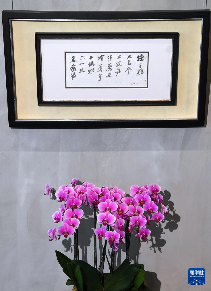 ??M+“CVIEW华”餐厅墙上悬挂的张大千的亲笔菜单(4月8日摄)。新华社记者 陈铎 摄