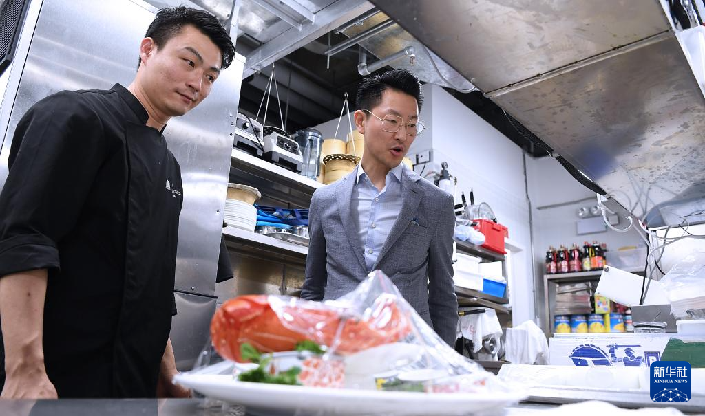 ??4月8日,吴振宇在厨房内检查工作。新华社记者 陈铎 摄