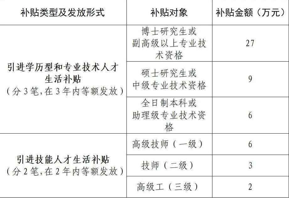 引进人才生活补贴