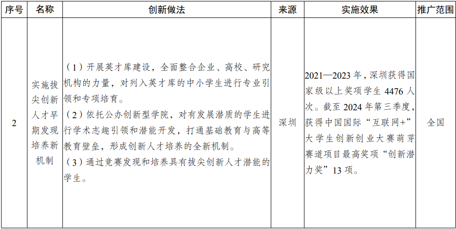 要素市场化改革方面,主要涉及实施拔尖创新人才早期发现培养新机制、建立跨境信用数据传输和认可机制等2项创新举措。