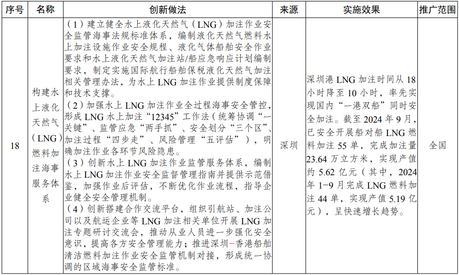 高水平对外开放方面,主要涉及构建水上液化天然气(LNG)燃料加注海事服务体系、推动人民币跨境收付便利等2项创新举措。