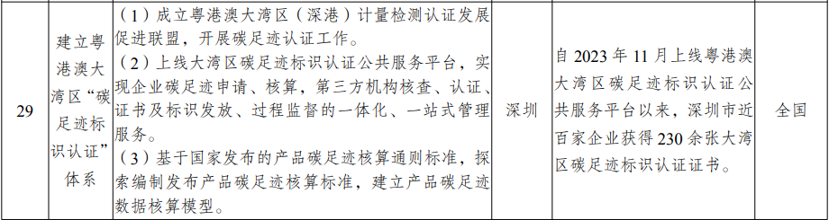 社会事业和空间治理方面,主要涉及建立粤港澳大湾区“碳足迹标识认证”体系、健全环境污染强制责任保险制度等2项创新举措。