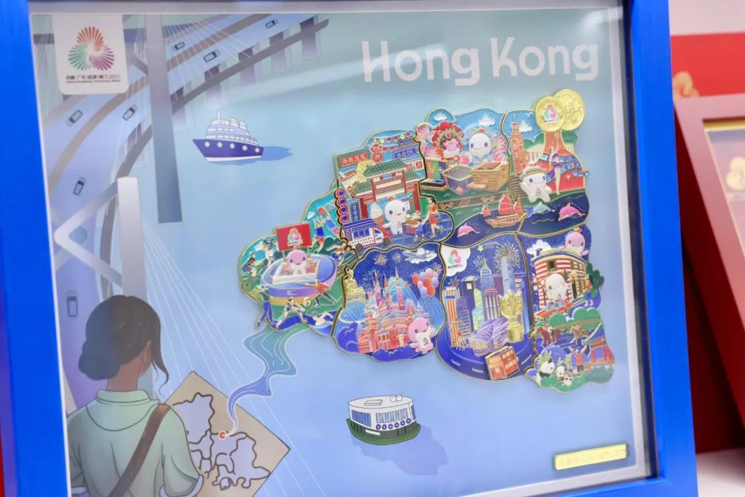 特许商品除了有全运会吉祥物“喜洋洋”和“乐融融”,还加入不少香港特色元素,包括维港、大澳、天星小轮等,商品种类包括公仔、徽章、保温瓶、搪瓷杯等。