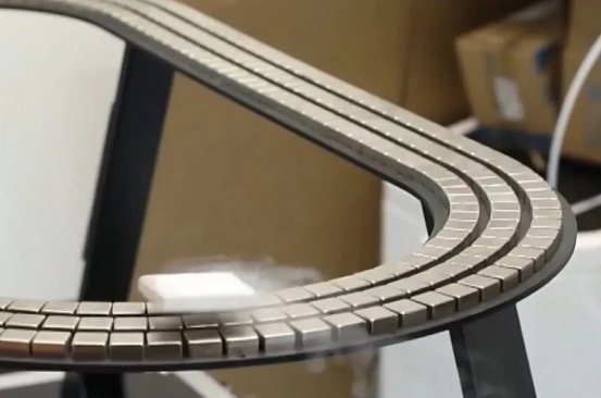 图为悬浮在轨道上的高温超导材料。