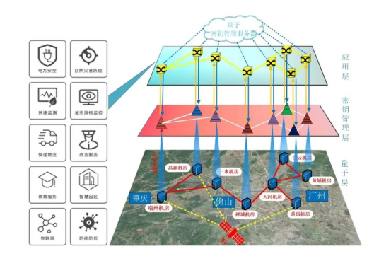 图为粤港澳大湾区广佛肇量子安全保密通信示范干线示意图。