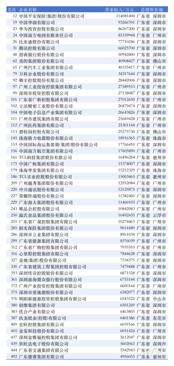 9月15日,中国企业联合会、中国企业家协会发布“2025中国企业500强”榜单。广东共有54家企业上榜,多家科技与先进制造企业位列其中。