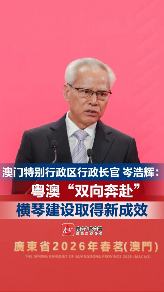 放眼粤澳维度,合作成效实打实、看得见。2025年,澳门入境旅客约4007万人次,创历史新高,其中广东旅客占比42.7%;“澳车北上”政策落地以来,经港珠澳大桥口岸进出的“澳门单牌车”达439万辆次。粤澳双方在经贸、金融、科技、民生、教育、医疗、社会保障等重要领域的合作取得新的卓越成效。