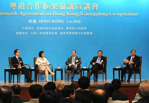 2010年6月1日,促进会与香港大珠三角商务委员会共同在香港举办“粤港合作框架协议宣讲会”,广东省省长黄华华和香港特区行政长官曾荫权出席并致辞。广东省副省长、香港特区政务司长唐英年分别作了主题演讲。香港恒生银行副董事长兼行政总裁梁高美懿、香港中华总商会会长蔡冠深、香港环境咨询委员会主席林群声和香港机场管理局行政总裁许汉忠在会上发言并和与会代表交流。香港中联办副主任周俊明,省政协副主席、省政府秘书长徐尚武,原全国人大常委曾宪梓,香港大珠三角商务委员会主席冯国经,香港侨界社团联会会长、全国政协常委余国春,香港广东社团总会主席王国强,香港铁路有限公司主席钱果丰等业界精英、社团领袖以及企业代表200多人参加了宣讲会。宣讲会上,两地政府部门代表与专家学者、业界代表一起,就落实《粤港合作框架协议》(下称《框架协议》)有关政策措施、重点内容等进行了深入交流,有力地增进了业界对《框架协议》的了解和认识。此次宣讲会吸引了多家媒体到场采访,取得了较好的社会效应。