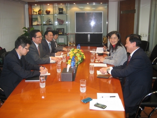 金萍副主任与促进会顾问澳门特别行政区经济财政司司长谭伯源先生座谈