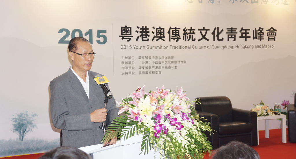 9月18日,由广东省粤港澳合作促进会主办、(香港)中国艺术文化传播促进会承办的首届粤港澳传统文化青年峰会暨《志合.山海近》粤港澳三地著名画家书画联展在《艺术广东》博览会展馆举行。来自香港青少年文化艺术发展协会、香港广佛肇联谊总会、香港五邑青年总会、香港中文大学研究生会、香港教育工作者联会、新星青年协会、紫荆青年会、香港精英会等150多名香港社团优秀青年代表参加了峰会,会场气氛热烈、座无虚席。