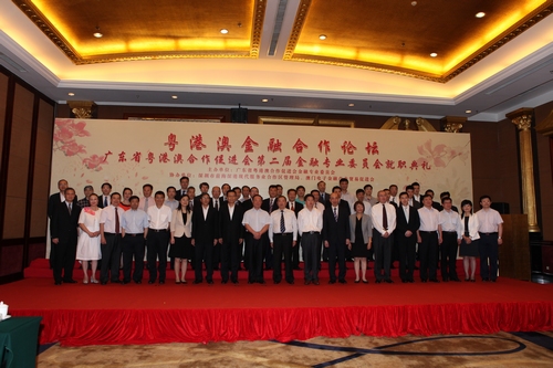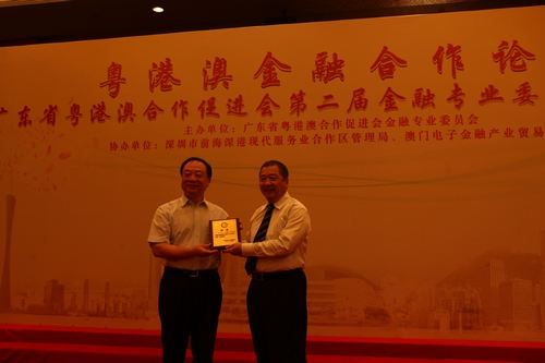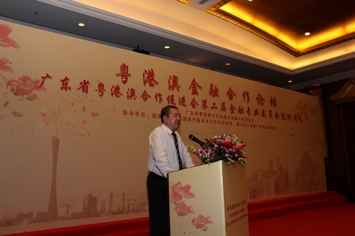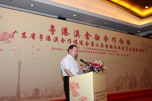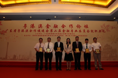 2013年6月28日上午,广东省粤港澳合作促进会(简称“促进会”)第二届金融专业委员会(简称“金专会”)暨金融合作论坛在深圳前海成功举行。全国政协常委、副秘书长、广东省原副省长宋海,促进会名誉会长、省港澳办主任廖京山,促进会副会长、省港澳办副主任金萍,深圳市政府党组成员、前海管理局局长张备及港澳中联办经济部领导、港澳特区政府部门领导、省金融办代表及粤港澳三地金融业界代表约100人出席了活动。