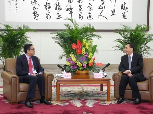 4月11日下午,省委副书记、省长朱小丹在广东省人民政府会见了来粤访问的香港中华厂商联合会(以下简称厂商会)会长施荣怀一行,省府办公厅、省发展改革委、省人力资源社会保障厅、省环境保护厅、省外经贸厅、省港澳办以及广东省粤港澳合作促进会等有关领导陪同会见。