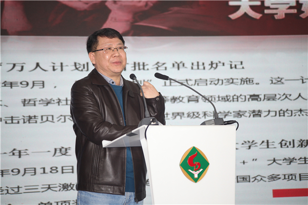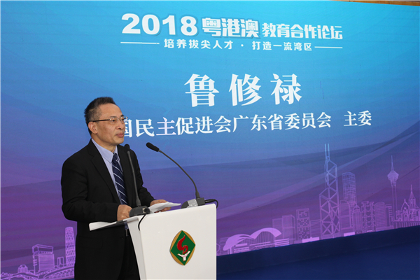 中国民主促进会广东省委员会主委鲁修禄在致辞中,从民进与教育、民进与港澳、民进与新时代三个方面做了介绍。