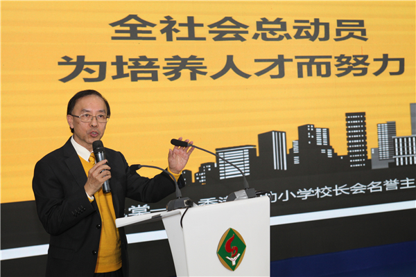 香港资助小学校长会名誉主席、香港教育专家梁兆棠校长以“全社会总动员为培养人才而努力” 为主题演讲。
